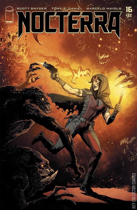 END OF STORY ARC 'NO BRAKES,' Part Five Thirteen years ago, the sun set and never returned. Now, with the forces of darkness staring them down, it's up to Val, Em, and the Ferrymen to save humankind from total blackout. NOCTERRA's latest arc comes to its stunning conclusion in a no-holds-barred showdown!