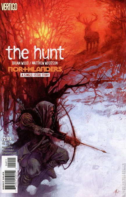 "The Hunt" In the middle of a long Scandinavian winter, a solitary hunter stalks the forest for what seems like weeks on end. His elusive prey starts to take on added significance as the hunter descends into helplessness and despair, to the point that the skills of even this seasoned outdoorsman are put to the ultimate test. Lavishly illustrated by Matthew Woodson, whose illustrations have appeared in Wired, Spin, Penthouse, Glamour and more, "The Hunt" is destined to be one of the most memorable Northlanders stories to date.