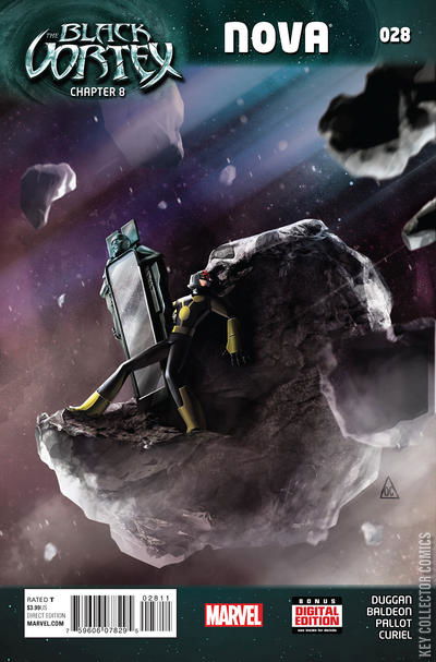 CHAPTER XXVIII: THE BLACK VORTEX, CHAPTER 8 Continued from Guardians of the Galaxy #25 Nova joins the Guardians of the Galaxy and the X-Men for a huge adventure. With the Black Vortex itself in his possession, Sam goes on the run for his life. Good thing they call him the human rocket! Continues in Legendary Star-Lord #10