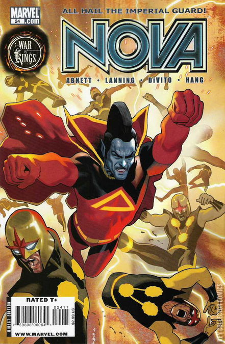 A WAR OF KINGS tie-in! As the Shi-Ar and the Kree's cataclysmic battle explodes across the cosmos, Richard Rider is forced to fight the one opponent he never wanted to: the ancient power that made him Nova in the first place! Yes, it's time for another of Dan Abnett and Andy Lanning's trademark jaw-dropping plot swerves! Plus: Please welcome new series artist Andrea DiVito (ANNIHILATION) to the book that Aint It Cool News says is packed with twists and turns, thrills and scares, cool stuff and awesomely jaw-droppingly cool stuff!