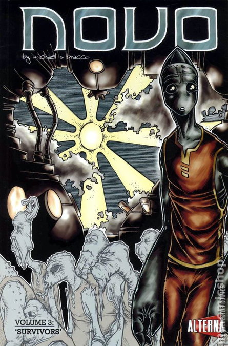 Volume 3 - 1st printing. "Survivors!" Story and art by Michael Bracco. Now living in a dome sealed off from the outside world, Novo works among the remaining inhabitants trying to reignite life under the watchful eye and iron fist of the corpulent Prettar. But behind the scenes a sinister conspiracy is brewing, one that threatens to shatter the lives of everyone, including Novo.