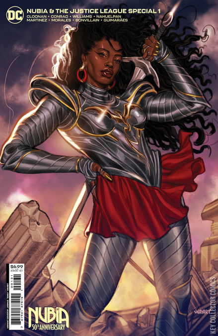 In honor of her 50th anniversary, Nubia is joining the Justice League! After years separated from Man's World, the Amazons' most powerful warrior and now queen has been called in to save the day and work alongside the world's greatest heroes. What danger awaits our hero and her new teammates? Find out in this special that shows a bright new future for the character!