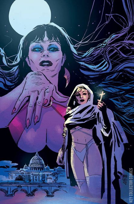 Nyx once killed Vampirella. More recently, they were tenuous allies. When their paths cross again, will it be as friends, enemies, somewhere in between, or all the above? How does Vampirella fit into Nyx's quest to learn how to live among humanity without harming them, when it's something Vampirella herself has never quite mastered? It could all become moot when old-school Vampirella foes the Cult of Chaos return seeking vengeance, both on Vampi and the disloyal daughter of Chaos who has rejected their mad god. (That's Nyx, FYI.) One thing's for sure - fangs, fists, and flame will fly!