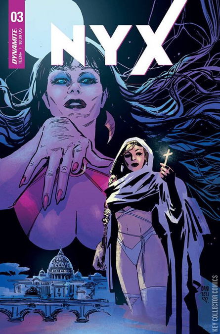 Nyx once killed Vampirella. More recently, they were tenuous allies. When their paths cross again, will it be as friends, enemies, somewhere in between, or all the above? How does Vampirella fit into Nyx's quest to learn how to live among humanity without harming them, when it's something Vampirella herself has never quite mastered? It could all become moot when old-school Vampirella foes the Cult of Chaos return seeking vengeance, both on Vampi and the disloyal daughter of Chaos who has rejected their mad god. (That's Nyx, FYI.) One thing's for sure - fangs, fists, and flame will fly!
