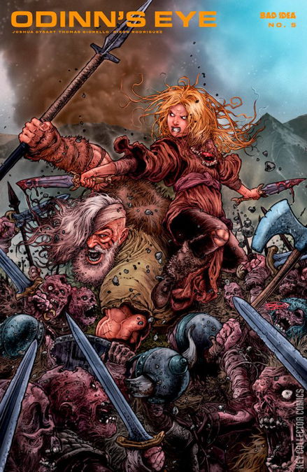 Solveig, a young farm girl of great promise, is haunted by visions from the god-king Odinn himself. In words she cannot understand, and images too violent for a child to comprehend, Odinn tasks Solveig with a brutal mission: retrieve his eye — the one he famously traded for wisdom — and bring it to him. In the real world, the winter season has not left the land of Solveig's people for several years. As crops fail and livestock perish, fear and panic grow. In their desperation to appease the gods and free the land of this never-ending winter, the tribe turns to the child whose visions are surely a sign from Odinn. A war party is assembled. Solveig and a band of warriors — including an all-seeing witch — are sent north on a great quest — one which will change all that she knows, all who she has known, and all that she will become. An epic of incredible scope and vision from the minds of Joshua Dysart and Tomas Giorello. Told weekly in 5 parts this December.