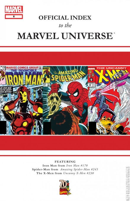 Continuing the chronicle of the Marvel Universe, starting with Spider-Man (from AMAZING SPIDER-MAN ANNUAL #18 on), Iron Man (from IRON MAN #183 on) and the X-Men (from UNCANNY X-MEN #253 on). Follow the history of the Marvel universe as it unfolds month by month with the All-New Official Index to the Marvel Universe. Each issue provides synopses for dozens of individual comics, including back-up strips, introducing you to the characters, teams, places and equipment that appeared within, providing vital information about first appearances, where they last showed up and where they appeared next!