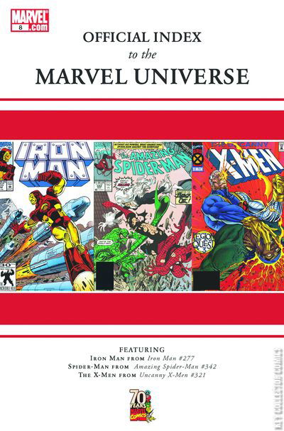 Continuing the chronicle of the Marvel Universe, starting with Spider-Man (from AMAZING SPIDER-MAN #342 on), Iron Man (from IRON MAN #277 on) and the X-Men (from X-MEN #321 on). Follow the history of the Marvel universe as it unfolds month by month with the All-New Official Index to the Marvel Universe. Each issue provides synopses for dozens of individual comics, including back-up strips, introducing you to the characters, teams, places and equipment that appeared within, providing vital information about first appearances, where they last showed up and where they appeared next!