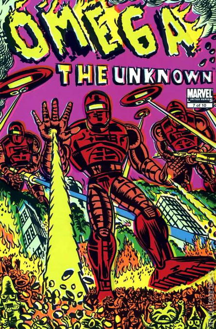 You know a super hero's in trouble when he resorts to drawing a comic book to try to solve his problems! Omega The Unknown #7, on top of the usual stellar array of talent, features special guest-star creator Gary Panter, known for his work on a legendary children's show, Frank Zappa's album covers, and RAW Magazine -- but he's never been between Marvel's covers before. Tune in!