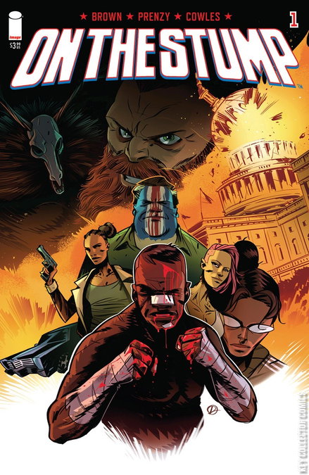 Each issue of arc one features a connecting variant cover by SANFORD GREENE! The campaign trail is paved with blood and broken bones. History diverged in 1868 when a pivotal presidential debate turned violent. Today, elections are decided by highly publicized hand-to-hand combat in arenas called Stumps. Unfortunately, the violence doesn't end in the ring, and powerful people can still get away with murder. Senator Jack Hammer and FBI Agent Anna Bell Lister are teaming up to bring it all down. Eisner-nominated writer CHUCK BROWN (BITTER ROOT) joins forces with Italian artist PRENZY (#Like4Like) and letterer CLAYTON COWLES to create a hyper-violent tale full of countless injustices—and people who have to fight for their place in it.