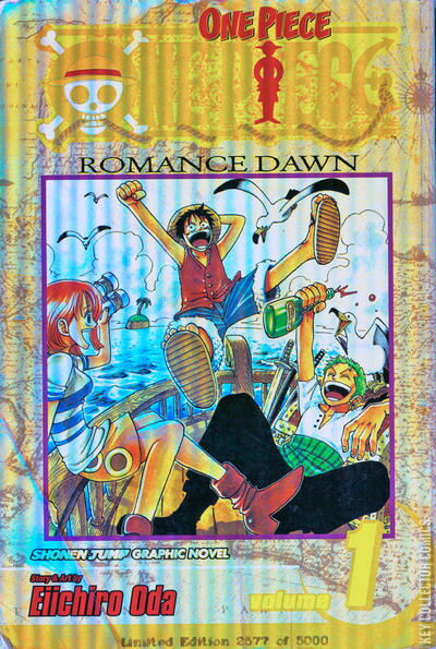 Home / Viz / One Piece / One Piece #1 Viz Released August 2003 One Piece #1 Add to Collection Want It Synopsis No synopsis available. Issue 1 of 65 Add to Collection Buy it on eBay Buy on eBay Low $1 Mid $2 High $8 Synopsis No synopsis available. Details Series One Piece Cover Date August 2003 Pages 220 UPC N/A Cover Price $7.95 Final Order Cutoff N/A Creators No creators listed. Price Guide Log in or subscribe to access detailed graded price information and market insights. Log In Subscribe
