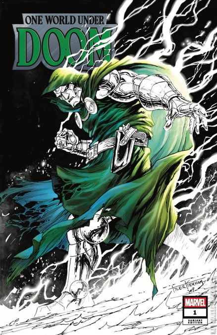 ONE WORLD UNDER DOOM! Six months ago, Doctor Victor Von Doom became Sorcerer Supreme - then disappeared behind Latveria's closed borders. For most, there's enough going on in the world that Doom's absence is not a priority, and some time without him feels like a blessing. Only a few recognize it for what it truly was...the calm before the storm. It is a storm that has now arrived. The world has woken up to a new reality: Doctor Doom, Earth's Sorcerer Supreme, has magically taken over every broadcast medium on the planet and declared himself Emperor of the World - the ruler of a new United Latveria! And shockingly, impossibly, all of Earth's leaders seem to be going along with this. Luckily, whether it's mind control or Doombots, whatever's affecting them hasn't affected Earth's heroes - and so they quickly form a strike team to stop Doom's machinations. But will they succeed? And what happens when some begin to welcome their new Emperor with open arms, clamoring for One World Under Doom? Marvel's biggest and most shocking event ever begins right here.