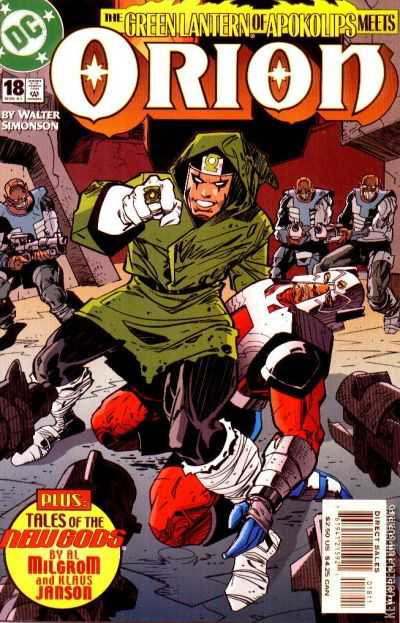 Orion goes back to Apokolips, the world of his birth. Once there, he is befriended by Rakar a former Green Lantern (from GREEN LANTERN 80-PAGE GIANT) who's been abandoned there at the hands of Darkseid! Can Orion make it from Apokolips to Earth?