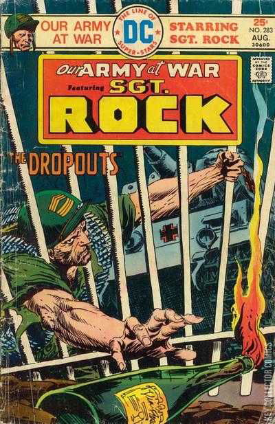 "Dropouts" - Cover art by Joe Kubert. Dropouts starring Sgt. Rock, script by Bob Kanigher, art by Doug Wildey. Bushido, Bob Kanigher's Gallery of War, script by Bob Kanigher, art by Ric Estrada. Letters page with Kubert art. War Games humor page, art by Sergio Aragones. 36 Pages, Full Color. Cover price $0.25.