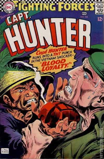 In the middle of war-torn Viet-Nam, Captain hunter stares death in the face -in the form of a hand grenade - in this issues battle action thriller. Can he escape the TNT punch that is heading his way in the story entitled, "Blood Loyalty!"