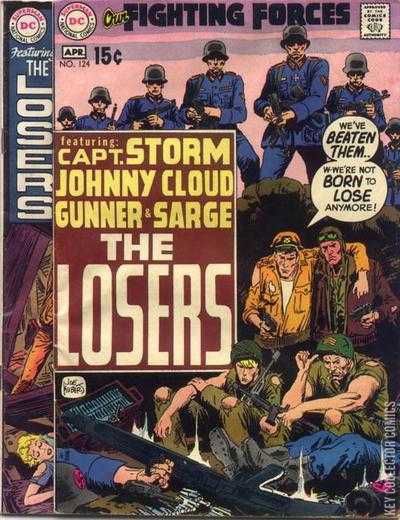 In World War Two a band of misfits joined together and formed the Fighting Force known as the Losers. In this issue, Captain Storm, Johnny Cloud, Gunner and Sarge are once again in a firefight with the Nazi's. Believing they have overcome the enemy and have at last shaken off the "Loser" tag which dogs them wherever they go, the team fail to realize that another German platoon is right behind them. Will the team realize the danger they are in or is this where the war ends for them? Cover by Joe Kubert; The Losers in "Losers Take All," 14 pages, Ross Andru and Mike Esposito art; "Parable," 8 pages, Jerry DeFuccio writer and John Severin art.