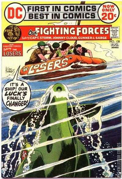During World War Two a group of misfits were thrown together to form the fighting force known as the Losers. Captain Storm, Johnny Cloud, Gunner and Sarge ran covert operations behind enemy lines. In this issue they are making their escape from the Germans by sea. Thinking they are home free as they spot a ship in the distance, the team are oblivious to the Nazi submarine below them. Has the Losers luck really changed - or has it just run out altogether?