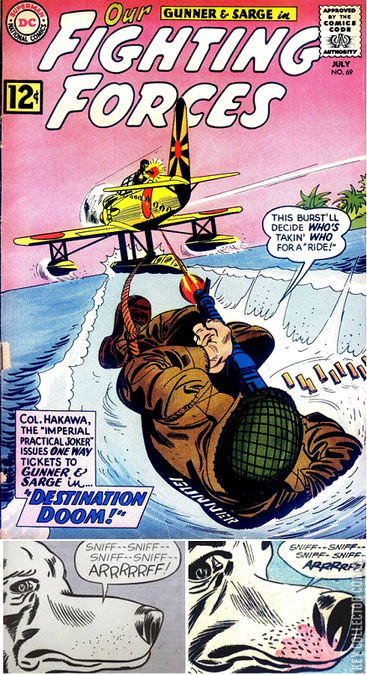 - Lower right image: interior panel illustrated by Jerry Grandenetti that was swiped by pop culture artist Roy Lichtenstein without attribution or compensation to the original creators