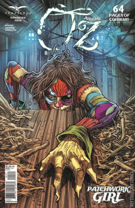Dorothy was once a young farm girl from Kansas, but it has been many years since she has been that person and even longer since she has returned to Earth. Now, residing as the queen of Oz, ruler of the Emerald City, she and her people have gone through their hardships but she has been there to protect them. But when a magical tornado rips through a prison, bringing one of most evil of creatures to ever walk among in Oz, to a small town in our world, Dorothy and her friends must set out to protect a place she once called home. And what she will find will change the very fabric of her identity. Introducing a horrifying new character, The Patchwork Girl, in this super-sized 64-page tale that can't be missed!