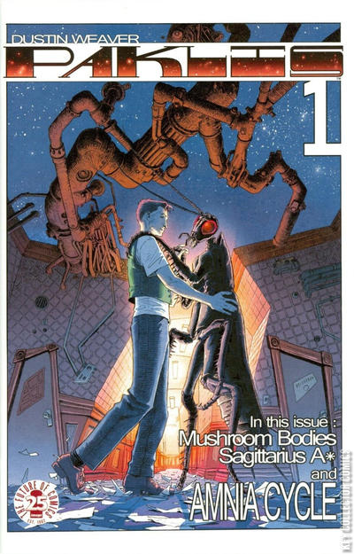 Do you accept the life you've been handed, or do you step into the unknown, even as it leads you into the shadows? In this new anthology series from writer/artist DUSTIN WEAVER, the characters in three mind-bending stories find themselves faced with this question. In "MUSHROOM BODIES," Greg struggles with knowing what's real and fears becoming complacent in a world of human insects. In the first installment of "SAGITTARIUS A*," war hero Linus Rad is on a mission to the center of the galaxy to learn the dark secrets of his dead father's scientific experiments. In the first chapter of "AMNIA CYCLE," Tara, a young Jet-Wing pilot, goes AWOL in the war against the Nuriel in order to help Amnia, a mysterious alien with no memory of where she came from and a desperate need to stop a terrible disaster! When Amnia disappears, it sends Tara on an adventure into the Shadow Zone.