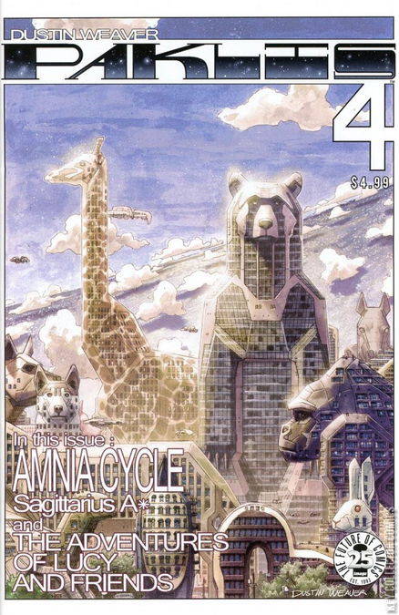 The city of Zoohurst is the pinnacle of architectural ambition, the spirit of the Shadow Zone, and the home of Shana Tyson, whose name was uttered on a mysterious transmission in the deep of space. Zoohurst is also Tara's next destination in her search for Amnia. But the massive animal buildings of Zoohurst are not the only architectural wonders to behold in this issue. In a collaboration between father and daughter, DUSTIN & LUCY WEAVER bring you “The Adventures of Lucy and Friends” where a group of friends visit the very strange Wing Store.