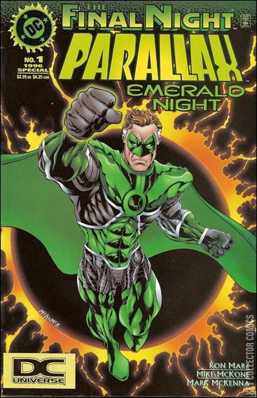 THE FINAL NIGHT TIE-IN - EMERALD NIGHT Continued from The Final Night #3 Green Lantern Hal Jordan was once one of the universe's greatest champions of justice. That was until the sinister Cyborg and evil tyrant Mongul destroyed everything he ever loved. Now, as the nigh omnipotent Parallax, Hal Jordan has become obsessed with revenge. But what happens after his vengeance is sated? Can current Green Lantern Kyle Rayner convince his predecessor to step back from the edge of oblivion to come back and save planet Earth from certain doom? Continues in The Final Night #4