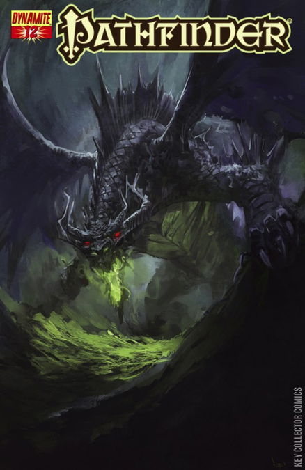 The Pathfinder adventurers barely survived their first confrontation with Black Fang. How will they endure now that the dragon is empowered by Thelsikar's dark magic? The second Pathfinder adventure ends with wall to wall action. The hit comic series based on Paizo's incredible award-winning fantasy world, fiction line and tabletop RPG continues! Sword & sorcery fans and gamers alike will enjoy this latest chapter from Paizo Publishing and Dynamite Entertainment.