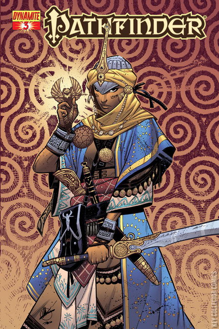 Valeros and his companions have captured one of the cultists behind the strange magic that grips the goblin tribes of Varisia, but their prisoner may not be as helpless as they seem. Making matters worse, the group must cross through the haunted cemetery known as Pauper's Grave, luring them into the paralyzing touch of flesh-eating ghouls. Paizo's incredible award-winning fantasy world, fiction line and tabletop RPG is now the ultimate fantasy comic from Dynamite Entertainment. Includes over 5 pages of character profiles and Pathfinder RPG game statistics, plus an EXCLUSIVE removable, playable tactical map and poster.