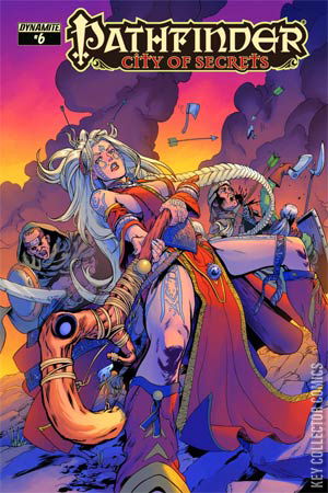 The Pathfinder heroes have been tested by the City of Secrets and, by the end of this chapter, it will leave its mark upon them. Divided, betrayed, and outmaneuvered at every turn, can the group go on… or is this where their adventure ends? Paizo's award-winning game world is brought to life in a pulse-pounding comic adventure! Each issue contains bonus rules material and a pull-out map for the award-winning Pathfinder RPG.