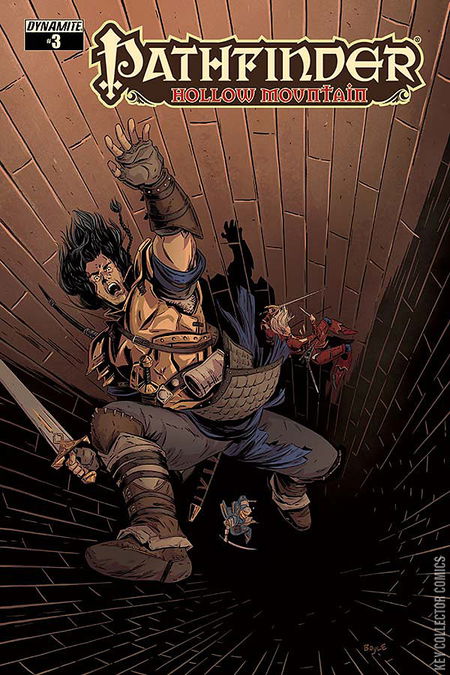 Valeros, Kyra, Merisiel, and a team of unlikely allies face off against the demonic Castellan of Hollow Mountain! With Ezren and Seoni seemingly killed, how will the remaining Pathfinders survive the deadly traps of the Runelords' most treacherous dungeon? Shadows, sinspawn, and more threaten our heroes in a tale written by Pathfinder publisher Erik Mona (Pathfinder Origins) and with art from rising star Tom Garcia (Mercy Thompson)! Contains pull-out poster map and official Pathfinder RPG bonus encounter!