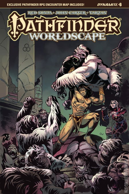 Kulan Gath makes his final move against Tarzan and the Council of Jungle Kings just as Ruthazek's three-world ape army crashes onto the scene! The Pathfinders, Red Sonja, John Carter, Tars Tarkas, Thun'da, and the almighty Fantomah unite in the epic conclusion to Dynamite's sword & sorcery superstar crossover event! Written by Pathfinder publisher Erik Mona (Pathfinder: Hollow Mountain) with art from Jonathan Lau (Red Sonja and Cub). Contains a Pathfinder RPG rules appendix and bonus pull-out poster map!