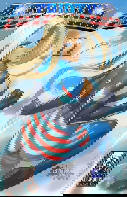 Patrtiotika is the combination of the tall powerful Athena Omega, the descendant of the goddess with the same name, and scrawny mild mannered college student Erin! Together they fight gods, monsters, and in this chapter some super powered ninjas!
