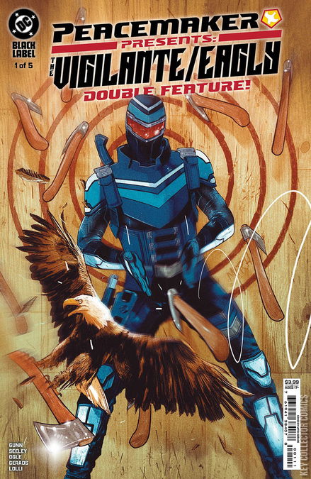 THEY GIVE PEACE A BAD NAME! DC Studios' James Gunn steps in as story consultant for 5 issues of insane $%&!@#$ calamity when two fan-favorite characters share the spotlight (and equal page count!) The Vigilante story starts when Peacemaker has disappeared! It's up to Adrian Chase, the Vigilante and Peacemaker's Bestest Friend to find him! The crime bosses of Evergreen must pay! BLOOD WILL BE SPILLED! (oh, wait, you say Peacemaker is just on vacation? Oh. uh. Don't tell Adrian.) Meanwhile, Eagly and his sidekick, Chris Smith (aka Peacemaker), are exhausted! After kicking the #$%@ out of a buncha Nazi lizard dudes, it's time to head to the great outdoors for some fresh air and a much needed vacay. But when their commute is co-opted by a bunch of masked &$#%$@#!, it's up to a certain eagle hero and his pet human to get themselves (and some dumb innocent folks) out of quite the pickle. Will lives be lost? Duh. An original DC Comics story, inspired by James Gunn's visionary Peacemaker series on MAX, ya best get ready to rumble!