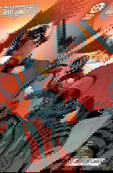 WHICH BEST FRIEND DIES FIRST?! DC Studios' James Gunn steps in as story consultant for five issues of insane $%&!@#$ calamity when two fan-favorite characters share the spotlight (and equal page count)! Well, fart noise. Peacemaker tried to be all tough in front of the pretty ladies and got himself impaled and may be dying. What a freakin' idiot. Luckily, his best friend and mentor--the magnificent and majestic Eagly--can back up his buddy. Which of course leads to victory! Yay! The good guys (can we call them good guys?) win!!! The end!!!! ...Oh. Wait. There's a traitor in their midst? Not good. All the while, our poor Adrian wants to kill some villains! But first, he's going to need to get through a whole lot of protection. This is a condom joke. Yes, we do an entire insane action scene in a scented prophylactic factory. Look what we've done to your beloved Eisner-winning Mitch Gerads now. An original DC Comics story inspired by James Gunn's visionary Peacemaker series on MAX, ya best get ready to rumble!