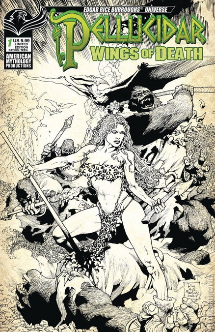 The immersive environment of Pellucidar comes to life amazing detail as we visit the tale that spun out of the Fear on Four Worlds event. The underground cities of the Mahars, the Sagoths, and the Horibs collide with savage repercussions in this beautiful new series illustrated by Bruno Bull and written by horror icon, Mike Wolfer. The Edgar Rice Burroughs' Universe expands into this first full length Pellucidar solo story with a surprise ending! Pellucidar Wings of Death #1 comes with three covers - Main by Roy Allan Martinez, Warrior Cvr by Mike Wolfer, and 350-copy limited-edition Virgin Art cover also by Martinez.