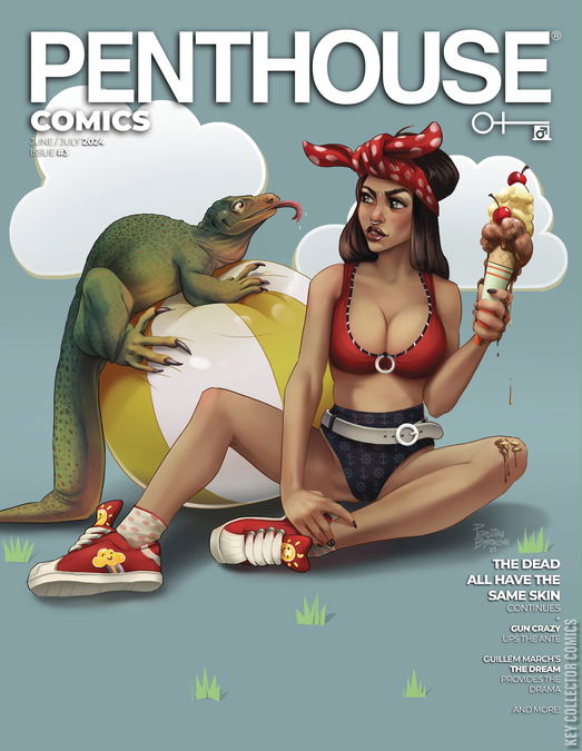 Cover art by Miriam 'Perditah' Hidalgo. She's worked with titles like Lego, Top Model, Playmobil, while working in animation on titles like Nocturna, Zorro Generation Z, and many more. Releasing 30 years after the original line debuted, Penthouse is proud to present the ongoing return of Penthouse Comics! Featuring a wealth of talent from all across the industry telling stories in the action, thriller, and horror genres, issue #3 continues the ongoing tales. Gun Crazy continues with the wild ride of Dolly Sanchez and Lanoya O'Brien, two girls fighting for survival in this violent story in the crossroads of Tarantino, VHS stuff, and the 80's. Guillem March continues with his incredible artwork on The Dream, a tale about Megan, a Hollywood casting director who attempts to bring out the potential actor hidden deep inside a stripper in the San Francisco suburbs. I Spit On Your Grave, is an adaptation of Vernon Sullivan's famous novel about Lee Anderson, whose only goal is to avenge the death of his brother. Along the way he'll fall into a life of debauchery and sex. The Dead All Have The Same Skin, continues with its tale about a mixed race bouncer in old world New York who must hide his identity to keep being accepted by society. But his brother, Richard has other plans. As always, Penthouse Comics features a bonus photoshoot and editorial!