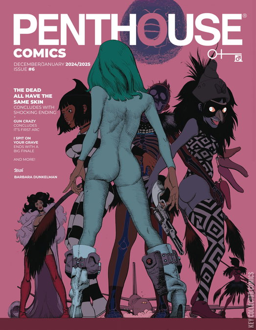 Cover art by James Harvey. Known for his work on Doom Patrol with DC and other publishers. Releasing 30 years after the original line debuted, Penthouse is proud to present the ongoing return of Penthouse Comics! This issue contains the conclusion to the rest of the stories contained in year one alongside an interview and shoot with former Creative Direction of Rooster Teeth. Miss October concludes its second part with a gripping ending that will have you on your heels for it's return in Penthouse Year Two! We also hang out with Barbara Dunkelman, former Creative Director of Rooster Teeth and dive into her career. Gun Crazy concludes its first arc with the wild ride of Dolly Sanchez and Lanoya O'Brien, two girls fighting for survival in this violent story in the crossroads of Tarantino, VHS stuff, and the 80's. I Spit On Your Grave and The Dead All Have The Same Skin conclude. As always, Penthouse Comics features a bonus photoshoot!