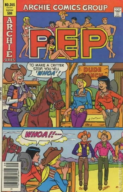 Cover art by Stan Goldberg. "Hush Puppy," script and pencils by Dick Malmgren, inks by Jon D'Agostino; Pop confides in Archie that today is his birthday, hoping Archie will spread the news all over; But he doesn't count on the usually talkative teen keeping quiet for once. "Owe Woe" one-page story, script by George Gladir, art by Dan DeCarlo Jr.; Archie and Jughead ask Moose to repay them in the wrong manner. Big Ethel Riddlers activity page. "Perfectly Clear," script by Dick Malmgren, pencils by Stan Goldberg, inks by Jon D'Agostino; Herman tries to show Bingo how to hit a baseball. "Finders Weepers," script and art by Joe Edwards; While playing sandlot baseball, the kids find a tin of money hidden in a tree; While the others spend their find, Jinx tries to track down the owner. "Your Number's Up," script and pencils by Dick Malmgren, inks by Jon D'Agostino; Archie tries to commit the phone number of a girl he picked up to memory. Jughead Pin Up, pencils by Dan DeCarlo Jr., inks by Jim DeCarlo.