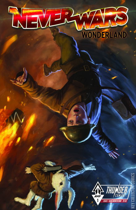The magical realms of Wonderland, Oz, and Neverland have been thrust into a devastating war that spans worlds and generations. A sinister technology created by the Jabberwock twists good into evil, turning beloved childhood figures into shadows of their former selves. Told through three uniquely illustrated and completely distinct first issues, NeverWars invites readers to experience this epic saga from multiple perspectives. Georgie Bird, a new recruit in the English army, stumbles into a conflict he doesn’t understand. Following a strange pull, he finds himself in Wonderland, where his stuffed rabbit reveals his hidden heritage. There, Georgie sees his grandmother, Alice, transformed into the ruthless Red Queen, and his world shatters. Start your journey into the NeverWorld with Issue 1 - Georige/Wonderland.