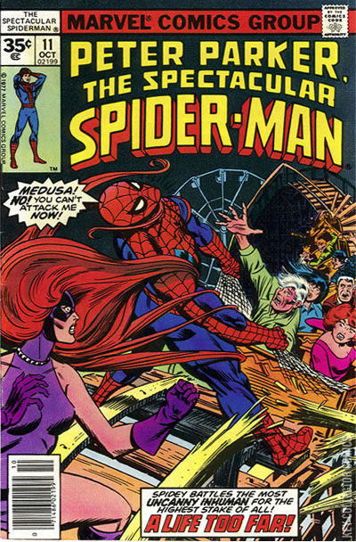 A LIFE TOO FAR When a young man pushed Peter Parker and Mary Jane out of the way of a chemical truck, the boy is injured. Rushed to the hospital by Spider-Man, Peter learns that the boy will survive his injuries caused by the accident, however if he does not get an antidote to the chemical that he was exposed to (which is located in Brooklyn) the boy will die. Hoping to repay the young man for his sacrifice, Peter tries to get the antidote before it's too late, and goes after it as Spider-Man. However, when he tracks down it's location, he's found that it has been stolen by Medusa of the Inhumans which leads to a battle between Medusa and Spider-Man. Spider-Man traces her back to Coney Island where he sees that the Inhumans are there with a gravely ill Kree. After a brief battle, the reason why Spider-Man needs the antidote is explained, after Black Bolt gives some of it to the Kree, he flies to the hospital where it is administered to the boy in the nick of time. Later, Spider-Man learns that the Inhumans and the Kree were trying to disarm a weapon that threatened the world. When Gorgon loses his temper over the validity of saving one life when the entire world was at stake, Spider-Man asks Gorgon if their attitude towards the life of one person is worth being considered Inhuman in deed as well as by name.