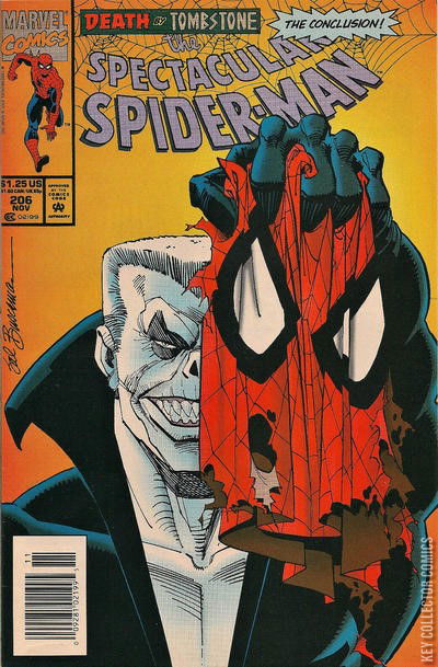 FATAL DESIRE! Emerging from the waters next to his warehouse hideout, Tombstone clutches the mask of Spider-Man and proclaims that the masked hero is dead. The Black Cat refuses to believe it and leaps past Tombstone and his men to dive into the waters. Tombstone tells his men to let her go as he needs to bring the mask back to the crime council to secure his spot within the group. When one of his men ask if they should bring Spider-Man's body, Tombstone tells them that the council can fish his body out of the East River if they want it so bad. Meanwhile, down blow, the Black Cat searches for Spider-Man's body in the dark waters of the East River. Suddenly, the wall-crawler grabs her by the arm and pulls both up to the surface. Peter explains that Tombstone had knocked him out and left him to drown. Thankfully, he came too soon enough to prevent himself from drowning. Needing to get home, but not wanting to leave his face exposed, Peter takes the Black Cat's mask since her identity isn't secret. He tells Felicia to go be with her boyfriend, Flash Thompson, as he recovers in the hospital and leave Tombstone to him. When Peter Parker returns home, his wife Mary Jane has some good news. She has just got off the phone with her agent, who just informed her that one of his other clients has to move to California and needs someone to move into her brownstone on the Upper East Side of the city. At first, Peter makes excuses for turning it down, including the cost and having to commute to school. However, Mary Jane convinces Peter to make the sacrifices. He then tells her that the Black Cat has been using her underworld connections to track down Tombstone, but he managed to slip a spider-tracer on her to intervene if she goes after him again. Meanwhile, Tombstone goes to the crime council to prove to them that Spider-Man is now dead. As he shows them the wall-crawler's mask, they are unaware that the Black Cat is listening from outside the window. Despite this, Nick Kaska refuses to allow Tombstone to join the council. Furious, Tombstone smashes their meeting table with a single blow of his fist. He then grabs Kaska by the throat and tosses him out the window. Although the Black Cat is too late to catch him, the sudden arrival of Spider-Man saves the mobster's life. Felicia is furious that Spider-Man followed her. In order to stop her from fighting Tombstone, Spider-Man webs her up to a nearby chimney and leaps into the building. As Spider-Man is busy fighting the mobsters and Tombstone, the Black Cat manages to cut herself loose from the wall-crawler's webbing. She then leaps into the building in order to get a crack at Tombstone herself. Unable to evade Tombstone's attack due to gunfire from his gang, Spider-Man webs their guns. When the web-head finally strikes a blow to Tombstone's face, it hurts Spider-Man more than his foe. Tombstone then charges, forcing himself and Spider-Man out of the broken window hoping to kill the wall-crawler in his fall. However, Spider-Man manages to twist them around so that Tombstone strikes the ground first. Although Spider-Man is stunned, Tombstone is no worse for wear. Tombstone manages to get a few blows in, but Spider-Man leaps onto a nearby wall. Wrapping his fist in webbing, the web-slinger then begins laying into his foe to the point where Tombstone's nose begins bleeding. At first, Tombstone appears unphased, but this is merely a delay in the beating he got from the web-slinger and he eventually blacks out. With their leader defeated, Tombstone's gang surrenders and they are all taken away from the authorities. In the aftermath, the Black Cat is furious that Spider-Man used her in order to get to Tombstone. Before she leaves she warns him not to push what few friends, as they may not be around when he really needs them. DESPAIR J. Jonah Jameson is walking along the Manhattan waterfront when he is ambushed by a mugger. Jonah doesn't offer any resistance and willingly gives up his valuables, but asks the mugger to answer some questions. His first question is if the young thief reads the Daily Bugle. This causes the mugger to burst out laughing because he considers the Daily Bugle a joke. This angers Jonah to the point where he ignores the potential danger and knocks out the mugger with a single punch. This is yet another person who has regarded his newspaper as a laughing stock, but refuses to believe it. A few hours later, Jameson has ended up getting drunk in a dive bar. At closing time, the bartender tells the publisher that it is time to go. Jonah asks the barkeep the same question and gets a lukewarm response. When Jameson questions his expertise but learns that the bartender actually spent four years in journalism school. He says while he doesn't have an opinion, his old journalism professor would be rolling in his grave. He points out that newspapers these days are not about the facts, but more about editorial speculation. A characterization that fits the Daily Bugle to a tee. When the bartender turns around to face Jonah, the newspaper man is gone. Jonah walks to the docks once again. There he decides that he has been living a lie and no matter what, he is going to put an end to his humiliation.