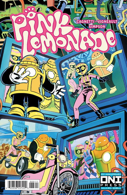 This is the moment at least some of you have been waiting for-the secret origin of both Pink Lemonade and OJ-Bot! After last issue's battle royale with one of her many doppelg�ngers, our hero is taken on a cross-medium odyssey as OJ-Bot himself lays bare the secrets of her universe. Plus: Just what exactly is Zavi Xarad's claim on the vitamin-powered protector? And: Pink Lemonade IN 3D?! Wow!