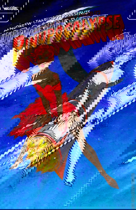 Pinupocalypse is a mix of 50's sci-fi and horror tropes reimagined with a clever twist. Set in 1950's small town America, this satirical adventure pits two stylish pin-up girls against hordes of zombies and aliens. Inspired by Hollywood filmmakers like Ed Wood, Sam Raimi and Edgar Wright, Pinupocalypse is an out-of-this-world story with a Gil Elvgren aesthetic to titillate readers! It's Foxy's birthday, and with money in her pocket, she's on a mission to find the perfect dress! That is until an explosion rocks the small town of Pinupolis and startles her out of the dressing room. Surrounded by suspicious green smoke, Foxy emerges to find that everyone else in town has turned into zombies!