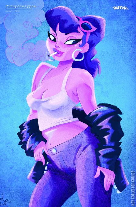 Poster Artist Michael Lombardi delivers a stylized mid-centry modern take on Roxy in this incentive cover variant. Pinupocalypse is a mix of 50's sci-fi and horror tropes reimagined with a clever twist. Set in 1950's small town America, this satirical adventure pits two stylish pin-up girls against hordes of zombies and aliens. Inspired by Hollywood filmmakers like Ed Wood, Sam Raimi and Edgar Wright, Pinupocalypse is an out-of-this-world story with a Gil Elvgren aesthetic to titillate readers! It's Foxy's birthday, and with money in her pocket, she's on a mission to find the perfect dress! That is until an explosion rocks the small town of Pinupolis and startles her out of the dressing room. Surrounded by suspicious green smoke, Foxy emerges to find that everyone else in town has turned into zombies!