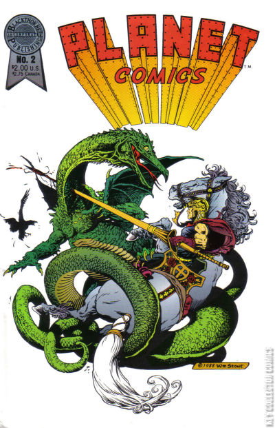 Stories by Bruce Jones. Art by Adrian Moro, Ken Hooper and Rico Rival. Cover by William Stout. Blackthorne Publishing resurrects the original Planet Comics title published by Fiction House in the 1940s-50s. Writer Bruce Jones even revives Matt Baker's gypsy adventurer, Flamingo, and original Planet Comics heroes Bowman and Lyssa, Queen of the Lost World, battling the reptilian Voltamen to free Earth. Featuring a terrific cover by legendary fantasy artist William Stout. Hunt Bowman in The Lost World; Flamingo; Secret Circle