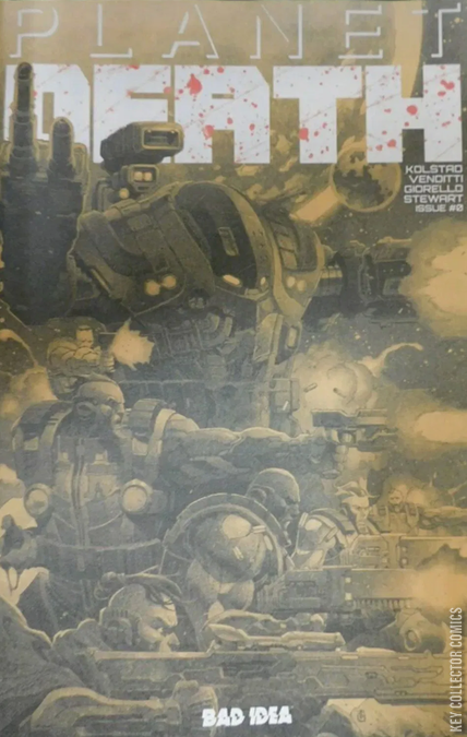 Blockbuster screenwriter Derek Kolstad, creator and writer of the internationally acclaimed, box office dominating motion picture franchise JOHN WICK, New York Times best-selling writer Robert Venditti (Superman '78, Green Lantern), with visionary artist Tomas Giorello (Star Wars, Conan) and ten-time Eisner Award-winner Dave Stewart (Star Wars, Hellboy) have combined forces to bring you this essential first chapter in a groundbreaking new sci-fi epic. Millions of miles from home, hundreds of ships descend into the stormy atmosphere of a hostile frozen world. On board, an army of resolute men and women brace for the coming assault. They are an invasion force, on an impossible mission - destroy the devastating enemy weapon garrisoned below. Corporal Scott and his battalion are in the vanguard but the human forces are no match for their brutal alien adversaries. Scott's battalion is dead within moments. He is its lone survivor. The landing force annihilated, the battle is lost. Against overwhelming odds, Scott dares the unthinkable - cross behind enemy lines, survive the lethal landscape, evade capture by ruthless enemies, resist natural predators, face human deserters and finish the mission singlehandedly. Locked in his suit of full combat battle armor, sustained only by what he can carry, and driven by Earth's wrath, Scott must do by himself what an entire army could not. Destroy the weapon. Return home. PLANET DEATH #0 is the must-read lead-in to July's 40-page prestige format PLANET DEATH #1.