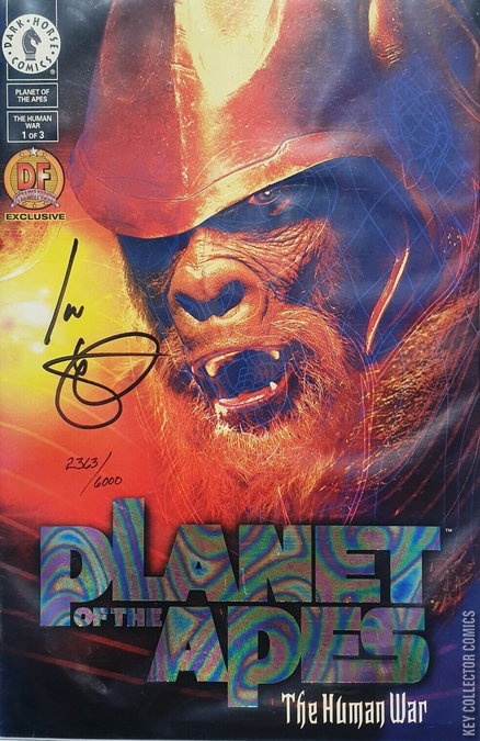 Several decades after human astronaut Leo Davidson's adventure on the ape world, ape society has been torn apart from within by a horrible civil war that's erupted between ape rebels advocating human integration and the fearful but powerful ape regime. Is the ape Seneca and his scattered but loyal followers of humans and apes enough to defeat the charismatic Shiva and her imposing ape army? The conflict has reached a bloody stalemate. But Shiva has a deadly secret that will end the war...and wipe out mankind! After all, the only good human is a dead human! Issue #1 of the series includes an exclusive Topps Planet of the Apes movie card!