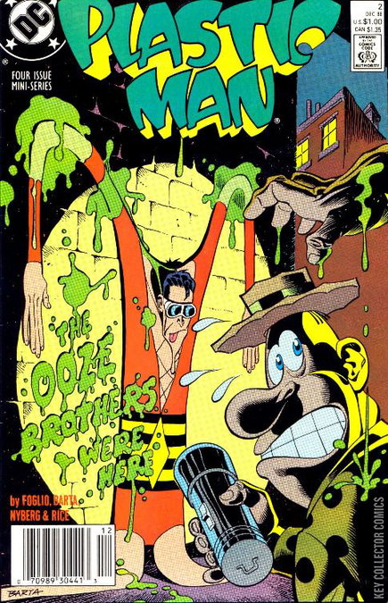Plastic Man confronts a peculiar band of bank robbers known as the "Ooze Brothers."