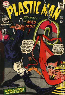 Stories: Plastic Man: "The Sly, Slippery, Slithery Sphinx" (14 pages) Plastic Man: "Menace of the Mad, Mad, Mod Goldzinger" (9 pages)