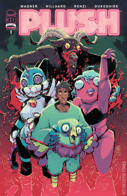 Serial-killing, cannibalistic furries! PLASTIC and VINYL creators DOUG WAGNER & DANIEL HILLYARD are back. This time, they've recruited colorist extraordinaire RICO RENZI for their disturbing "neon-horror" spin on fursuit psychopaths and bizarre love. In PLUSH, Devin Fulcher is coerced into attending his first furry convention. When he accidentally happens upon a group of furries devouring a human, the insanity begins. Do they just want Devin for dinner... or something much more wicked?