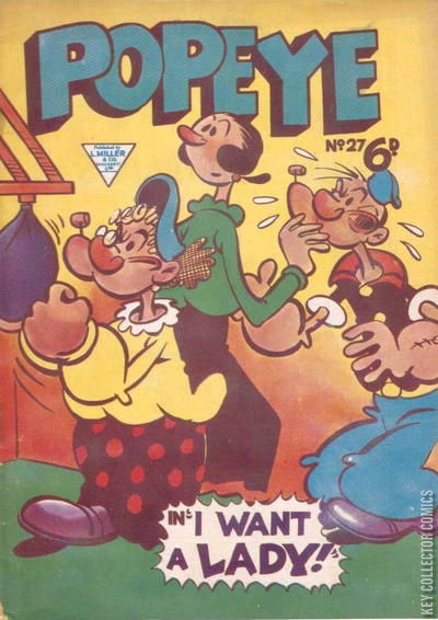 Home / L Miller Son / Popeye / Popeye #27 L Miller Son Released January 1959 Popeye #27 Add to Collection Want It Synopsis No synopsis available. Add to Collection Buy it on eBay Buy on eBay Low $8 Mid $25 High $90 Synopsis No synopsis available. Details Series Popeye Cover Date January 1959 Pages 28 UPC N/A Cover Price N/A Final Order Cutoff N/A Creators No creators listed. Price Guide Log in or subscribe to access detailed graded price information and market insights. Log In Subscribe